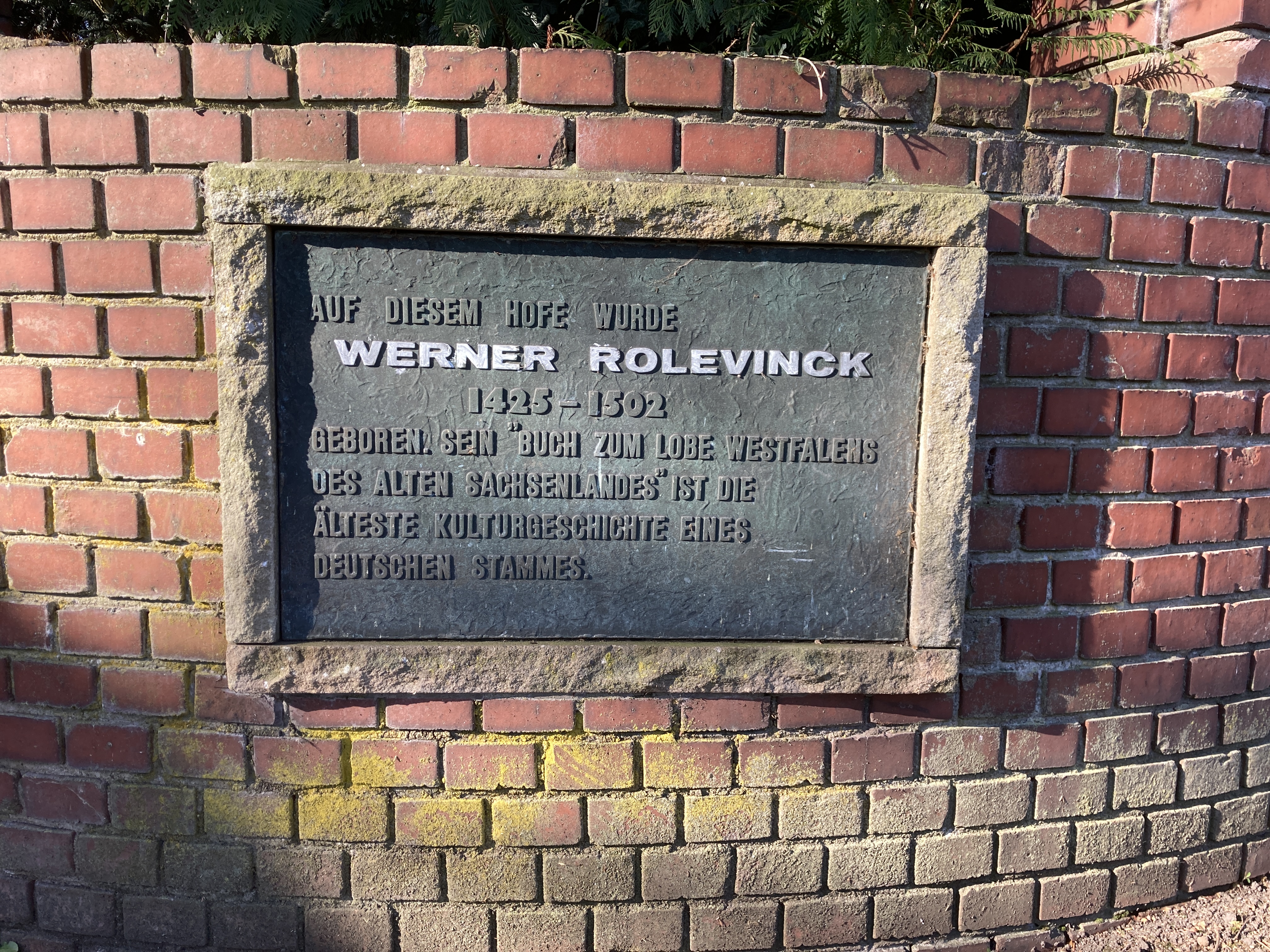 Dort in Laer ist die Geburtsstätte des berühmten Autors, der alte Rolevinck-Hof (heute Schulte Altenroxel), ein großer Bauernhof am Rande des Ortskerns, bis heute im Ortsbild präsent und mit einer Erinnerungstafel ausgezeichnet. Ein Straßenname und der Name der Schule erinnern an den berühmtesten Spross der Gemeinde.