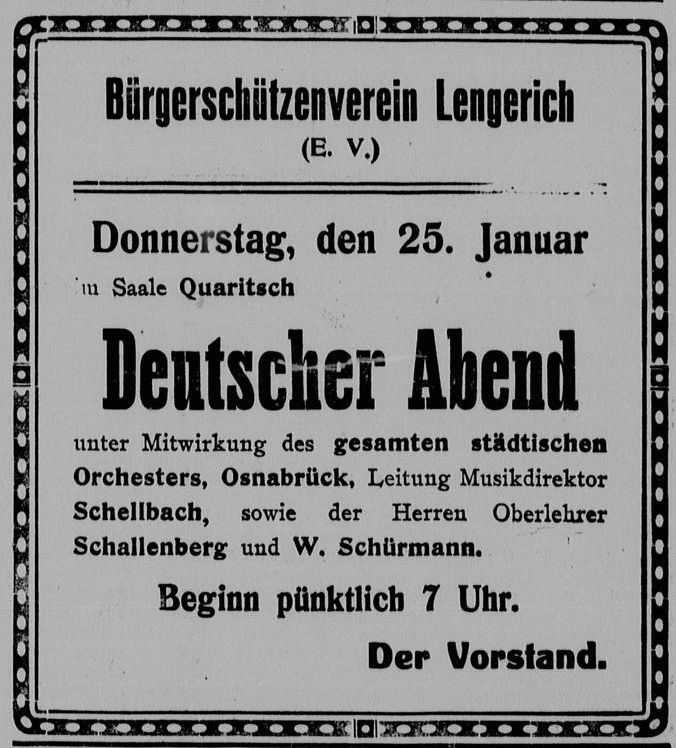 Zu Beginn des 20. Jahrhunderts waren die Schützen in Lengerich im Kreis Tecklenburg in zahlreichen Vereinen organisiert. In der Stadt gab es die Bürgerschützen Lengerich von 1835 (1985 umbenannt in Bürgerschützen Lengerich von 1810) und den Schützenverein Lengerich-Stadt von 1893 und in Hohne existierten seit 1921 vier verschiedene Schützenvereine (Hohne, Hohne-Niedermark, der Allgemeine Schützenverein Hohne und seit 1921 der Schützenverein Hohne-Ost). In der damaligen Landgemeinde Lengerich hatte jede Bauerschaft ihren eigenen Schützenverein (Aldrup, Antrup, Intrup, Ringel, Schollbruch, Settel, Vortlage-Niederlengerich, Wechte).