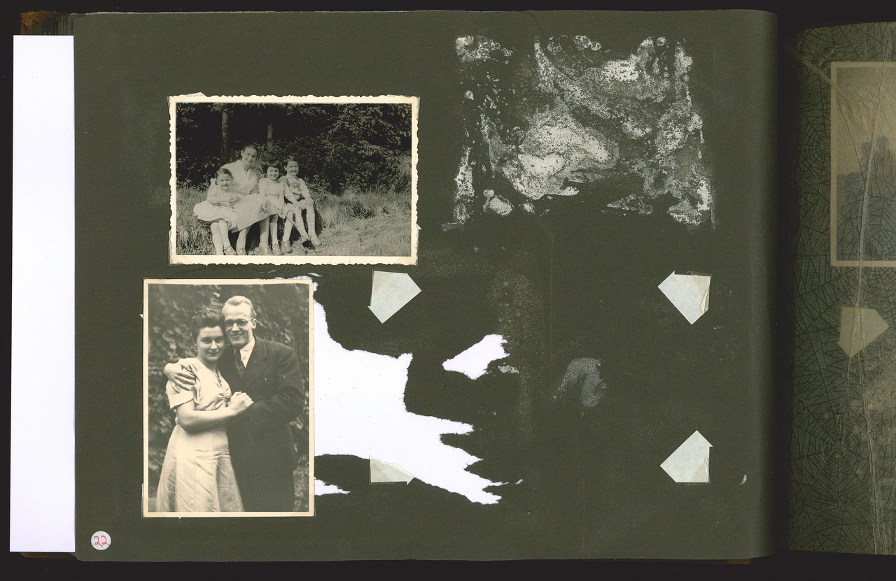 Unabhängig davon, wie der Inhalt ursprünglich angelegt wurde, ist der im Album vermittelte lebensgeschichtliche Entwurf nicht in Stein gemeißelt. Auf der oben beschriebenen Albumseite beispielsweise befand sich ursprünglich ein viertes Foto, das später wieder entfernt wurde. Über den Grund lässt sich nur spekulieren: Vielleicht wurde es in ein anderes Album eingefügt, eingerahmt oder verschenkt, vielleicht ist eine Beziehung in die Brüche gegangen. Spuren nachträglicher Überarbeitungen lassen sich in vielen Fotoalben finden. Manchmal werden die Abzüge mit großer Sorgfalt aus den Alben gelöst, neue eingefügt und Kommentare ergänzt, so dass die Veränderungen kaum auffallen. In anderen Fällen werden eingeklebte Fotos herausgeschnitten oder rabiat herausgerissen. Mehrfache Überarbeitungsschritte, in denen Fotos immer wieder ausgetauscht und neu angeordnet werden, sind keine Seltenheit. Während einige Alben und ihre Erzählungen im Laufe dieser Bearbeitungen erweitert und verfeinert werden, dienen andere eher als handliche Fotoarchive, aus denen Fotos beliebig entnommen und einem anderen Zweck zugeführt werden können. Die Spuren dieser Überarbeitungen verweisen auf den fortlaufenden Gebrauch der Fotoalben, der mit einer stetigen Um- und Neuinterpretation der eigenen Biografie einhergeht.
