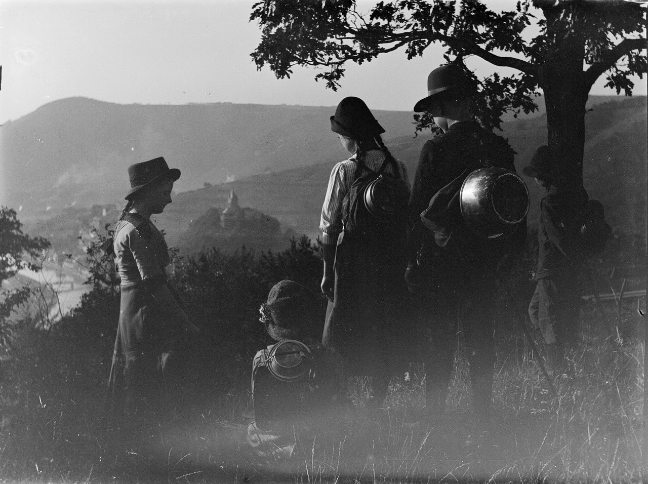 Viele regen zum Vergleich an: Richard Schirrmann war ein „Knipser“, kein professioneller Fotograf. Wenn der Lehrer mit Schüler:innen oder im Kreise von Mitgliedern des Sauerländischen Gebirgsvereins unterwegs war, Menschen, Stimmungen und Landschaftsimpressionen festhielt, folgte er oft zeitgenössischen, jugendbewegt inspirierten Motiven und ihrer Bildästhetik. Beliebt waren Aufnahmen von Gruppen im Gegenlicht und aus Untersicht, Ausblicke durch Torbögen von Burgen und Gruppen in Bewegung, die auf die Bildbetrachter:innen zukommen. Schirrmanns Fotos ähneln hin und wieder denen, die ein Profi wie beispielsweise Julius Groß (1892-1986), „der“ Wandervogelfotograf, sie aufgenommen hat. Sie unterscheiden sich aber auch, nicht zuletzt in technischer Hinsicht.